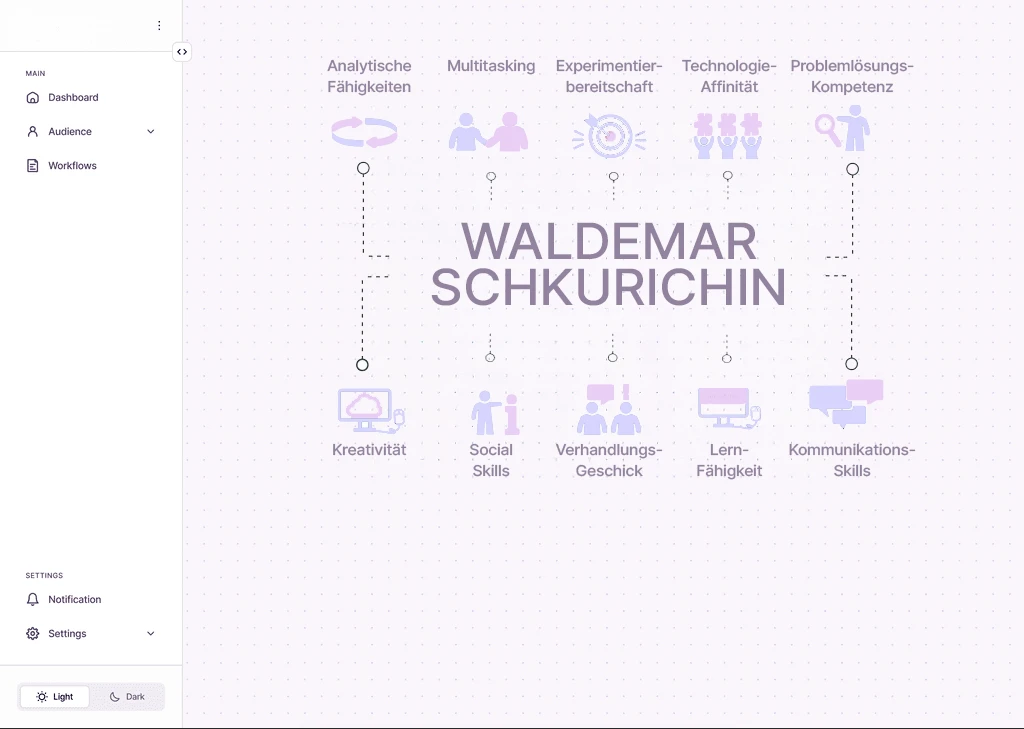 Eine integrierte Marketing-Architektur, die Strategie, Daten und Kreativität vereint – entwickelt, getestet und skaliert von einer Person, die weiß, wie Impact entsteht.